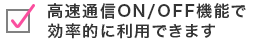 データ量が残っている場合に、任意のタイミングで高速/低速通信を切り替えることで、データ量の節約ができます。
