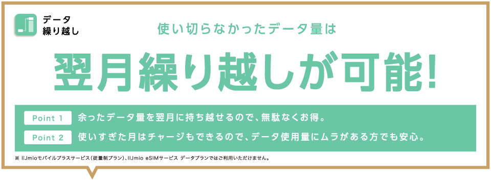 余ったデータ量は翌月に繰り越せ、家族でご利用ならデータ量をシェアできます。