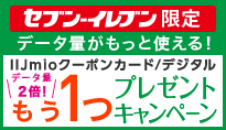 キャンペーン期間中にIIJmioクーポンカード/デジタルを購入いただいた方へ、ご購入いただいたものと同じIIJmioクーポンカード/デジタルをもう一枚プレゼントいたします。