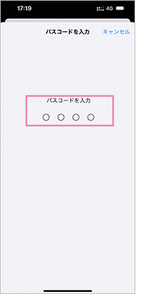 - 端末にパスコードを設定している場合は、コードの入力を求められます。端末のロック解除に使用しているパスコードを入力してください。
