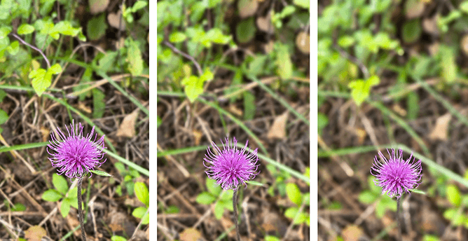 ポートレートモードでは、ボケの程度を1〜6まで設定することが可能です。下記画像の左端が1、中央が3、右端が6に設定した写真です。数字が大きいほど、背景がボケるのがわかります。