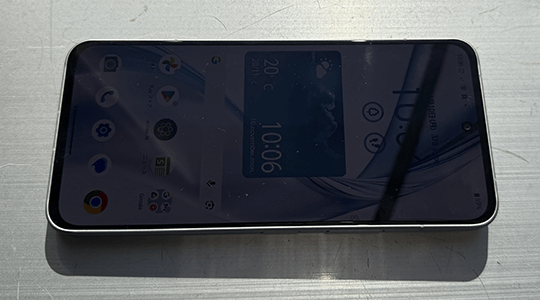 arrows Alphaは3,000nitの高輝度ディスプレイを搭載しており、明るい照明の直下でも見やすく、屋外の強い直射日光下でも表示が確認できます。