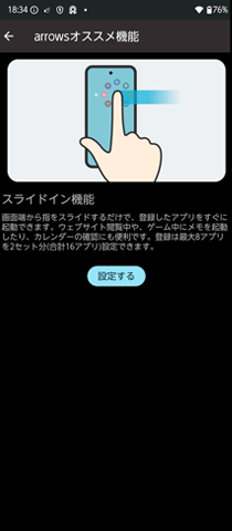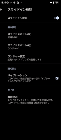 スライドインランチャーは、画面端から指をスライドしてランチャーを起動し、その中に登録済みのアプリを素早く起動できる機能です。