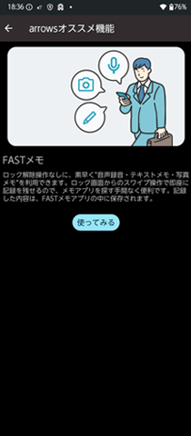 FASTメモは、ロックを解除することなくテキスト・音声・写真でのメモ作成を実現します。