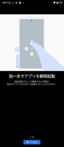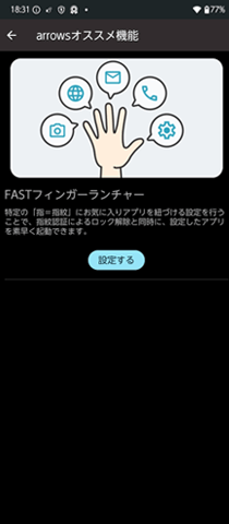 FASTフィンガーランチャーは、任意の指にアプリを割り当てる機能です。任意の指の登録と識別は指紋で行われるため、ロック解除と動作が自動的に素早く行われます。