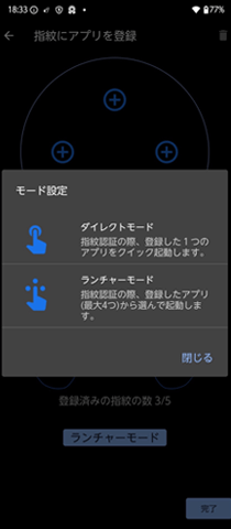 モードは、任意の指に応じた特定のアプリを起動するだけではなく、任意の指に応じたランチャー(4つのアプリを登録可)も選択できます。