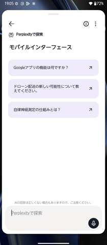Perplexity やCopilotとの連携も可能になりました。今回はPerplexityを試してみます。
