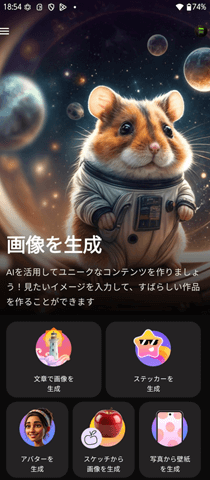 「画像を生成」機能では、「文章で画像を生成」と「写真から壁紙を生成」の2種類を利用できます。