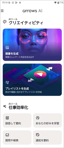 さらに、独自のarrows AIは写真撮影だけでなく、文章作成や通知機能など、日常のさまざまな場面でユーザをサポートします。