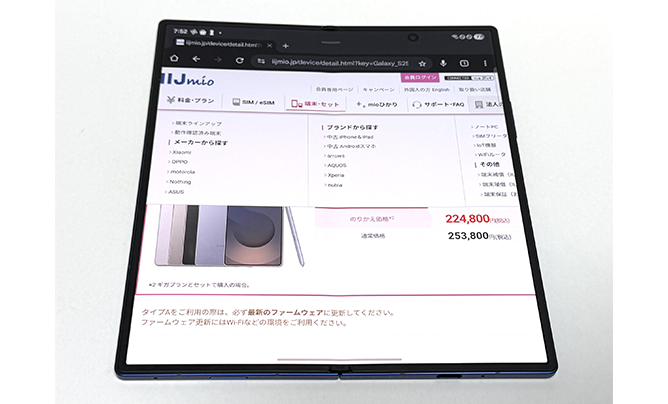2026年1月現在、IIJmioでのGalaxy Z Fold7の通常価格は、一括払いなら次の通りです。
