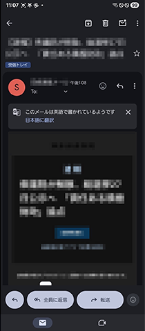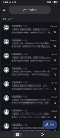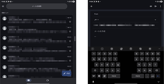 また、左右に分割して「左側画面に一覧」を、「右側画面にメール本文」を表示させることもできます。