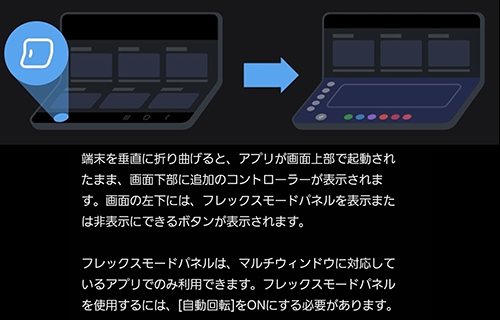 折りたたむと、下側画面にフレックスモードパネルが表示