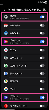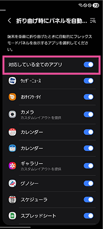フレックスモードパネルに対応したアプリでは、「カスタムレイアウトを提供」と表示されます。
