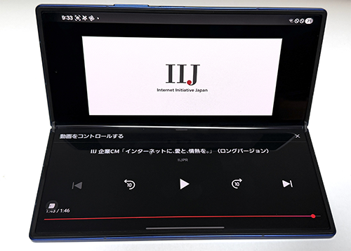 また、メインディスプレイを広げた際は小型タブレットに匹敵するような大きなディスプレイを利用でき、特に動画視聴は細部まで見やすく快適です。