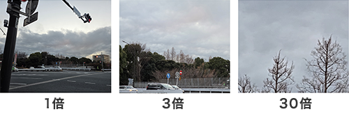 Galaxy Z Fold7は、0.6倍から、光学相当2倍ズーム、光学3倍ズーム、最大30倍のデジタルズームに対応しています。